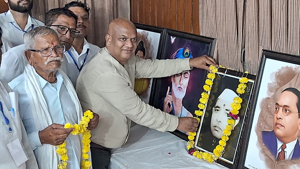 झांसी।(भूपेन्द्र रायकवार) वीरांगना झलकारी बाई सेवा समिति के तत्वावधान पूर्व विधायक बाबू अयोध्या प्रसाद जी के 122वे जन्मदिन के अवसर पर संगोष्ठी एवं सम्मान समारोह का कार्यक्रम किया गया। कार्यक्रम में सबसे पहले बाबू अयोध्या प्रसाद जी की चित्र एवं समाज के महापुरुषों के चित्रों पर माला पहनाकर कार्यक्रम की शुरुआत की गई । मुख्य अतिथि डॉक्टर नीरज बनोरिया, अतिथि डॉक्टर आलोक कृष्णा, एमएल वर्मा, आरएस वर्मा ज्ञानेंद्र भासने मंगल सिंह कोरी वीरांगना झलकारी बाई जी के वंशज रहे। कार्यक्रम की अध्यक्षता भगवानदास राजबुकसेलर ने की।